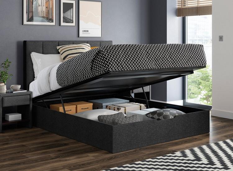 Home Treats Grey Double Ottoman Bed Curved Winged Headboard Ottoman Ottoman Bed Double No Headboard this platform bed features a bookcase headboard with five open storage spaces, two adjustable shelves, a hidden storage. The mattress sits on a heavy duty solid pine slat base and can be lifted. This double bed with storage is perfect for any bedroom. our model 07 bed is an ottoman bed without the headboard. bed base only. Ottoman Bed Double No Headboard.